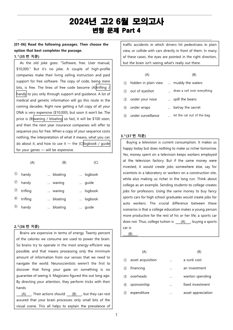 2024년 고2 6월 전국 연합 모의고사 변형 문제 Part 4_PDF