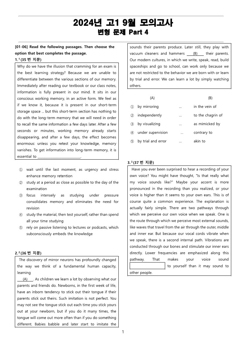 2024년 고1 9월 전국 연합 모의고사 변형 문제 Part 4_PDF