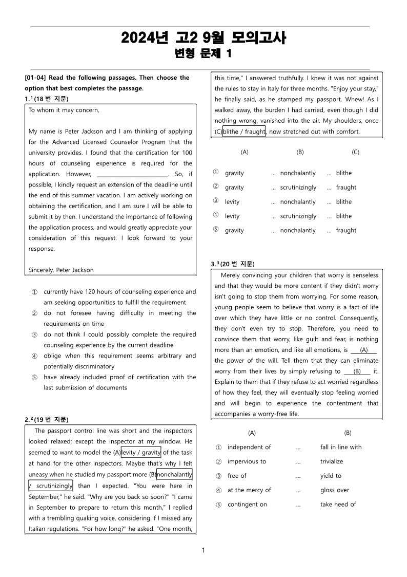 최상의 2024년 고2 9월 전국 연합 모의고사 변형 문제 Part 1를 선보입니다.