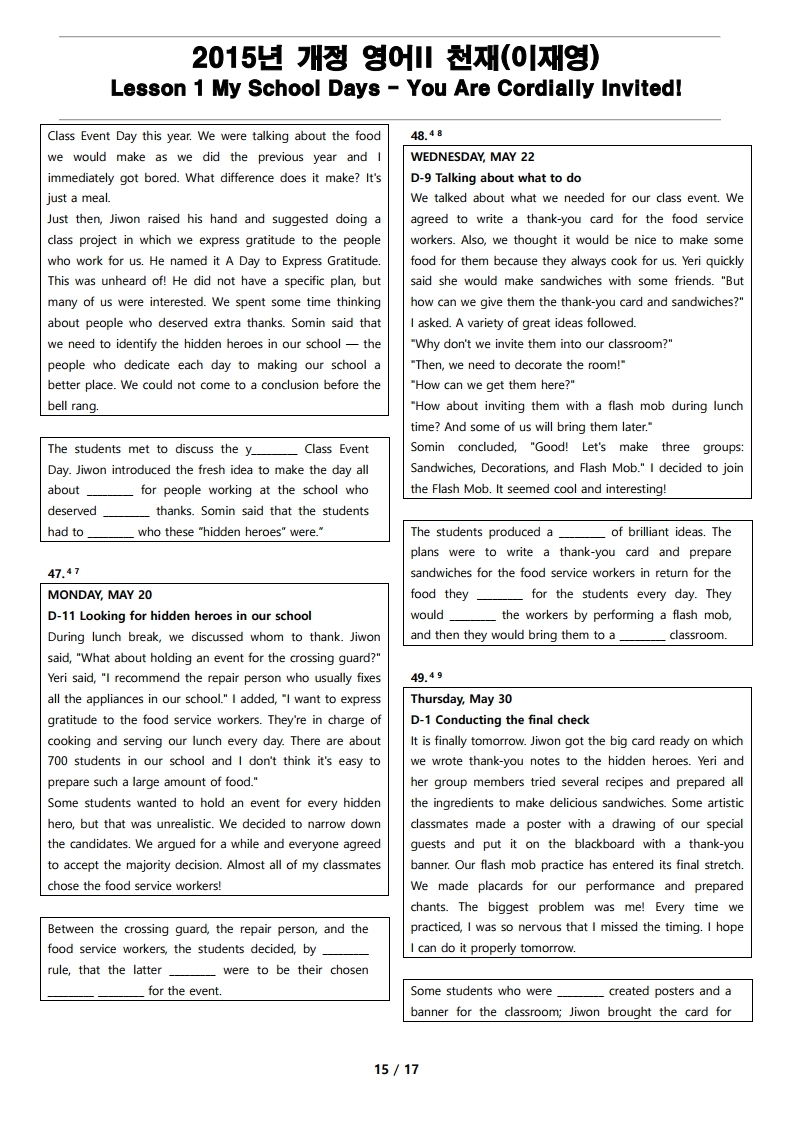 더메이킹스(The Makings)가 제작한 2015년 개정 영어 II 천재(이재영) 1과 변형 문제의 지문입니다.