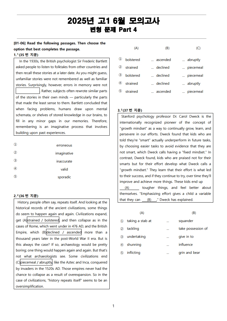 2025년 고1 6월 전국 연합 모의고사 변형 문제 Part 4_PDF