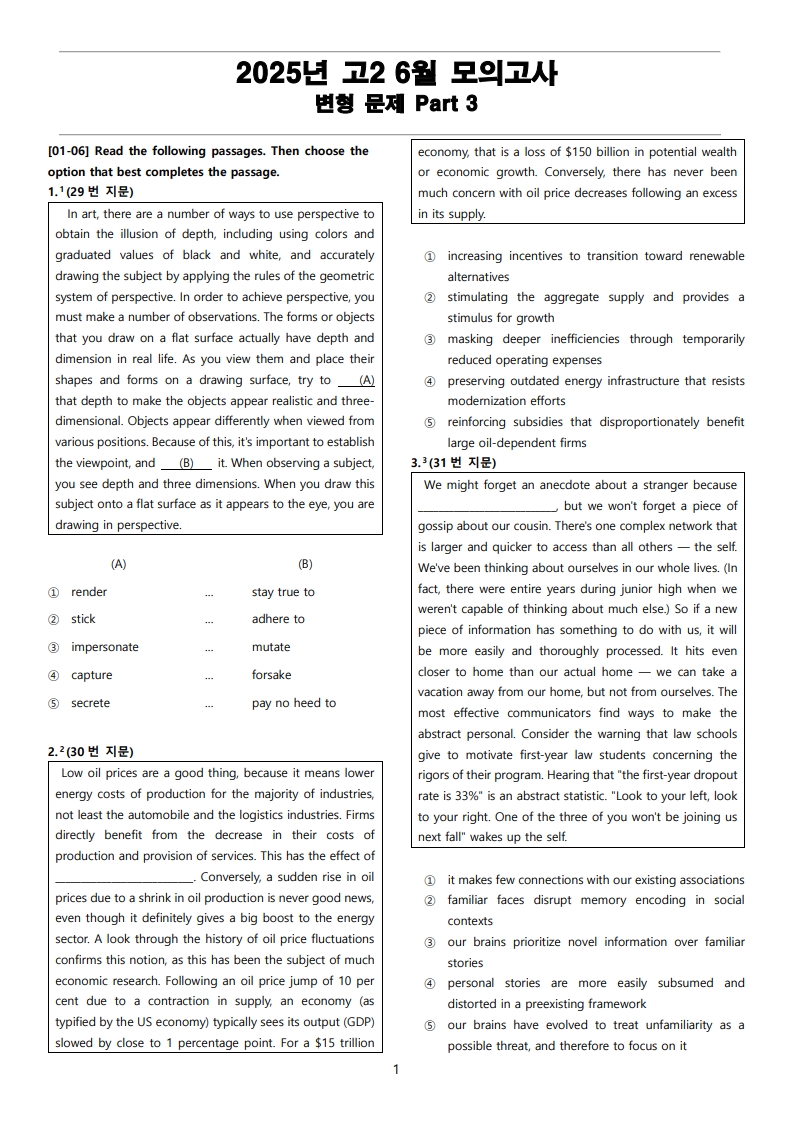 2025년 고2 6월 전국 연합 모의고사 변형 문제 Part 3 (66문항) (PDF)