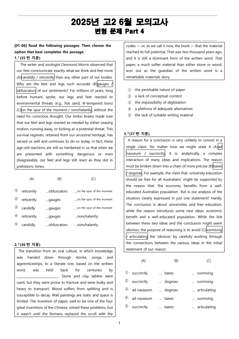 2025년 고2 6월 전국 연합 모의고사 변형 문제 Part 4_PDF