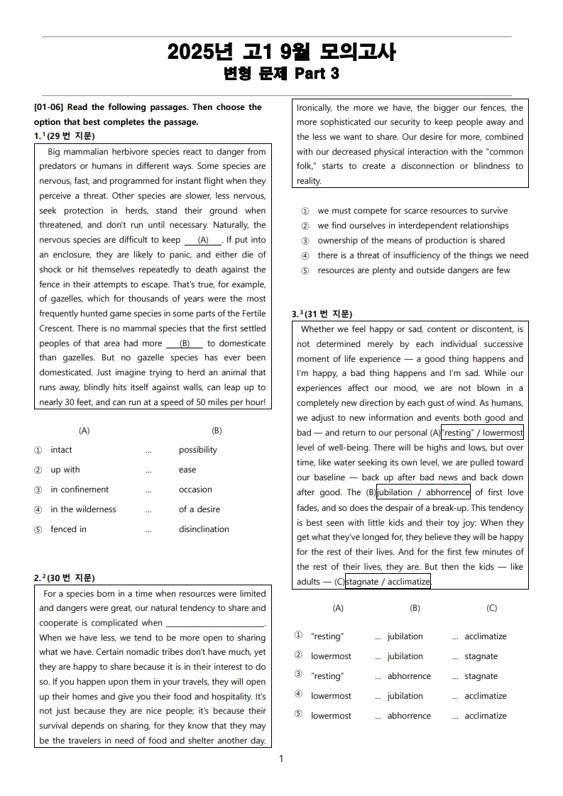2025년 고1 9월 전국 연합 모의고사 변형 문제 Part 3을 선보입니다.