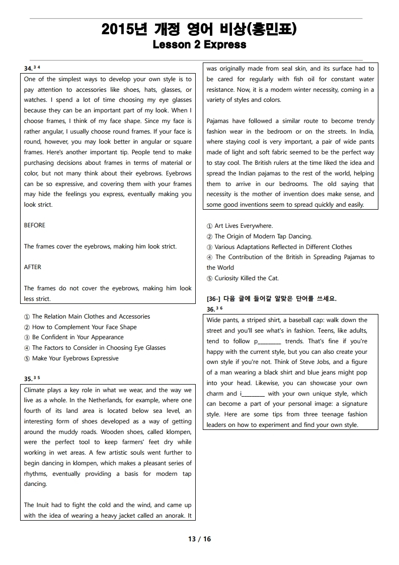 2015년 개정 영어 비상(홍민표) 내신 문제, 고등교과서 내신 문제, 고등 변형문제, 고등영어자료, 비상 홍민표 변형 문제, 비상 홍민표 내신 문제