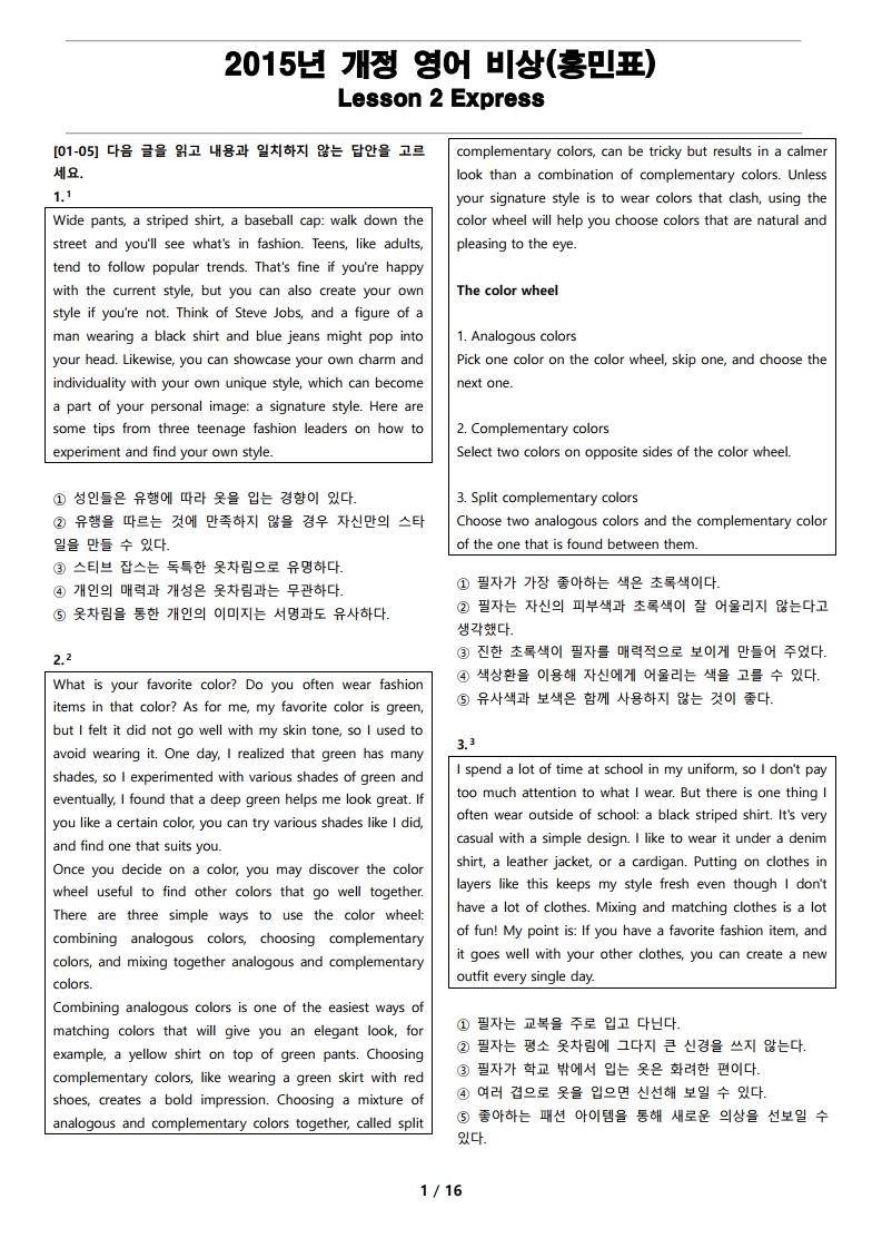더메이킹스(TheMakings)가 제작한 2015년 개정 영어 비상(홍민표) 2과의 지문입니다.