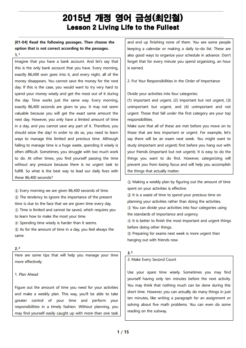 2015년 개정 영어 동아(이병민) 2과 변형 문제를 선보입니다.