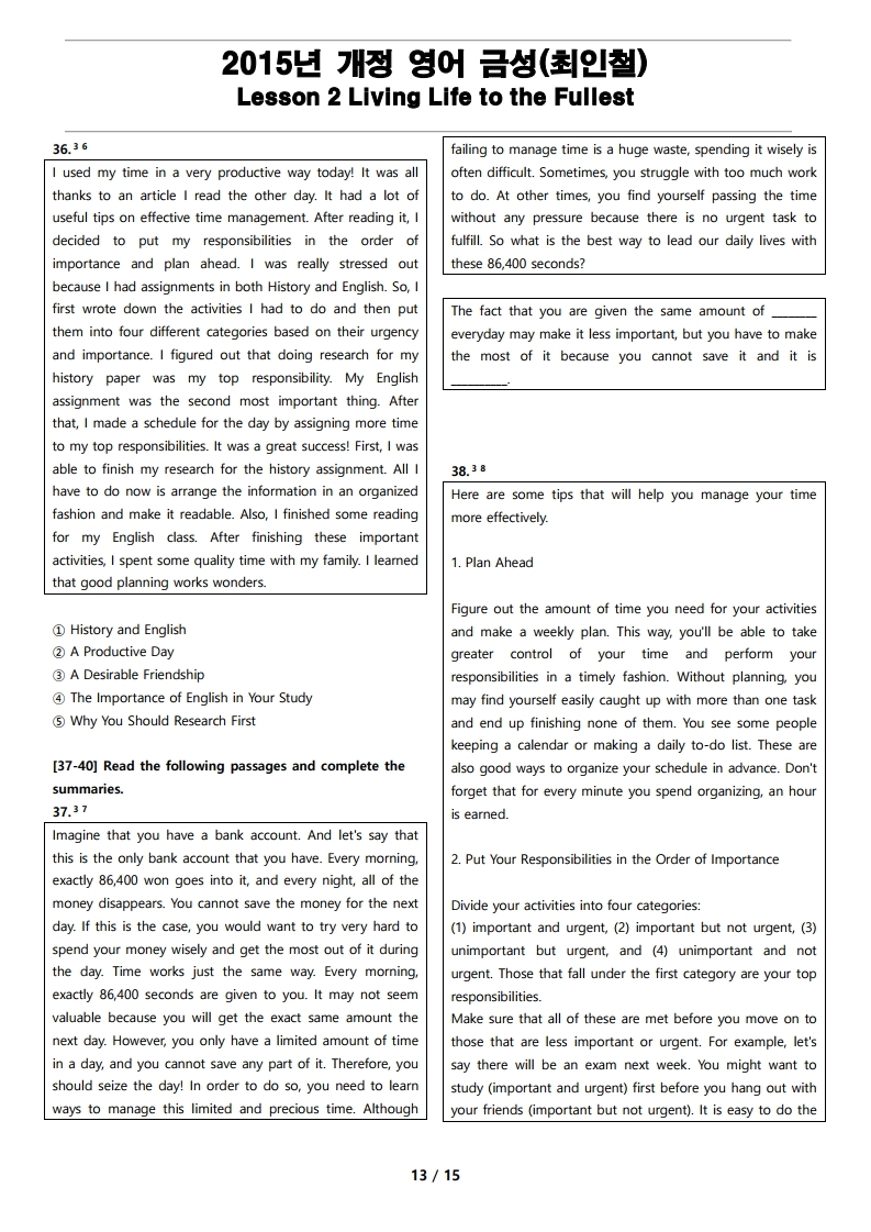 2015년 개정 영어 동아(이병민) 2과 변형 문제, 내신 대비, 영어 내신자료,고등 영어자료, 기출 문제,