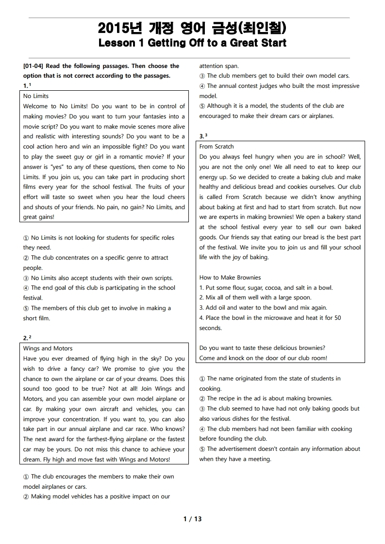 더메이킹스(The Makings)가 제작한 2015년 개정 영어 동아(이병민) 2과의 지문입니다.