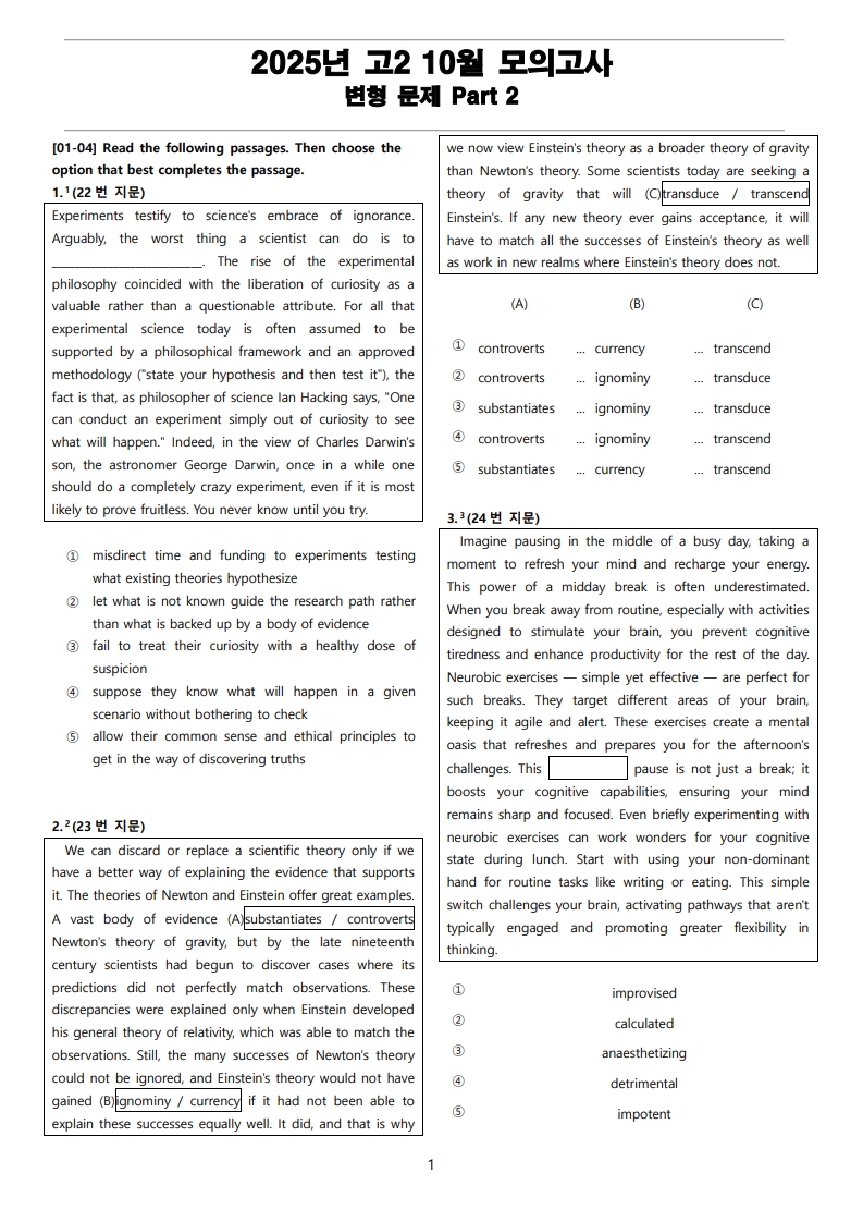 2025년 고2 10월 전국 연합 모의고사 변형 문제 Part 4를 선보입니다.