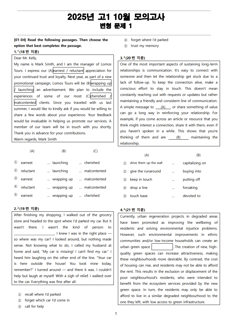 2025년 고210월 전국 연합 모의고사 변형 문제, 내신대비, 영어내신자료,고등영어자료, 모의고사 변형문제,전국 연합모의고사 변형자료, 모의고사 영어 서술형 대비, 대치동 고등 영어자료, 대치
