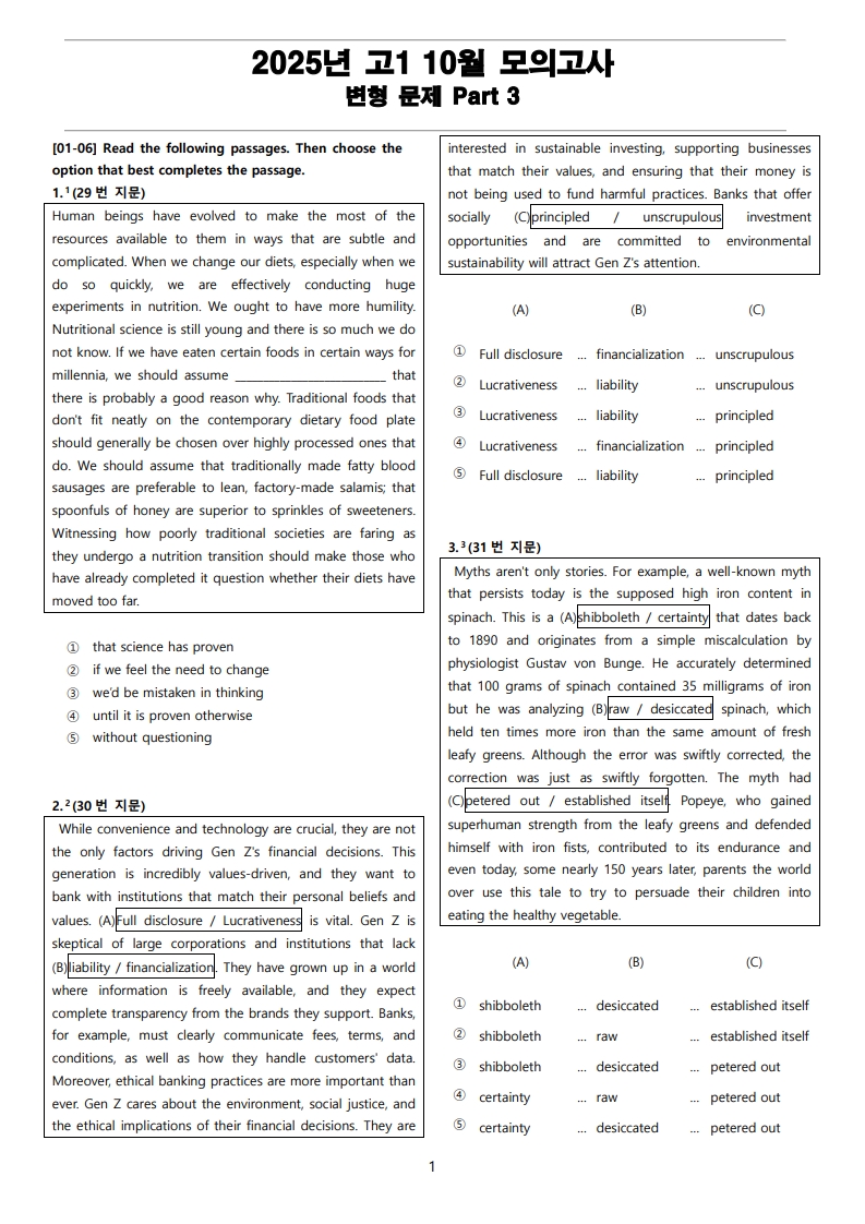 2025년 고1 10월 전국 연합 모의고사 변형 문제 Part 3을 선보입니다.